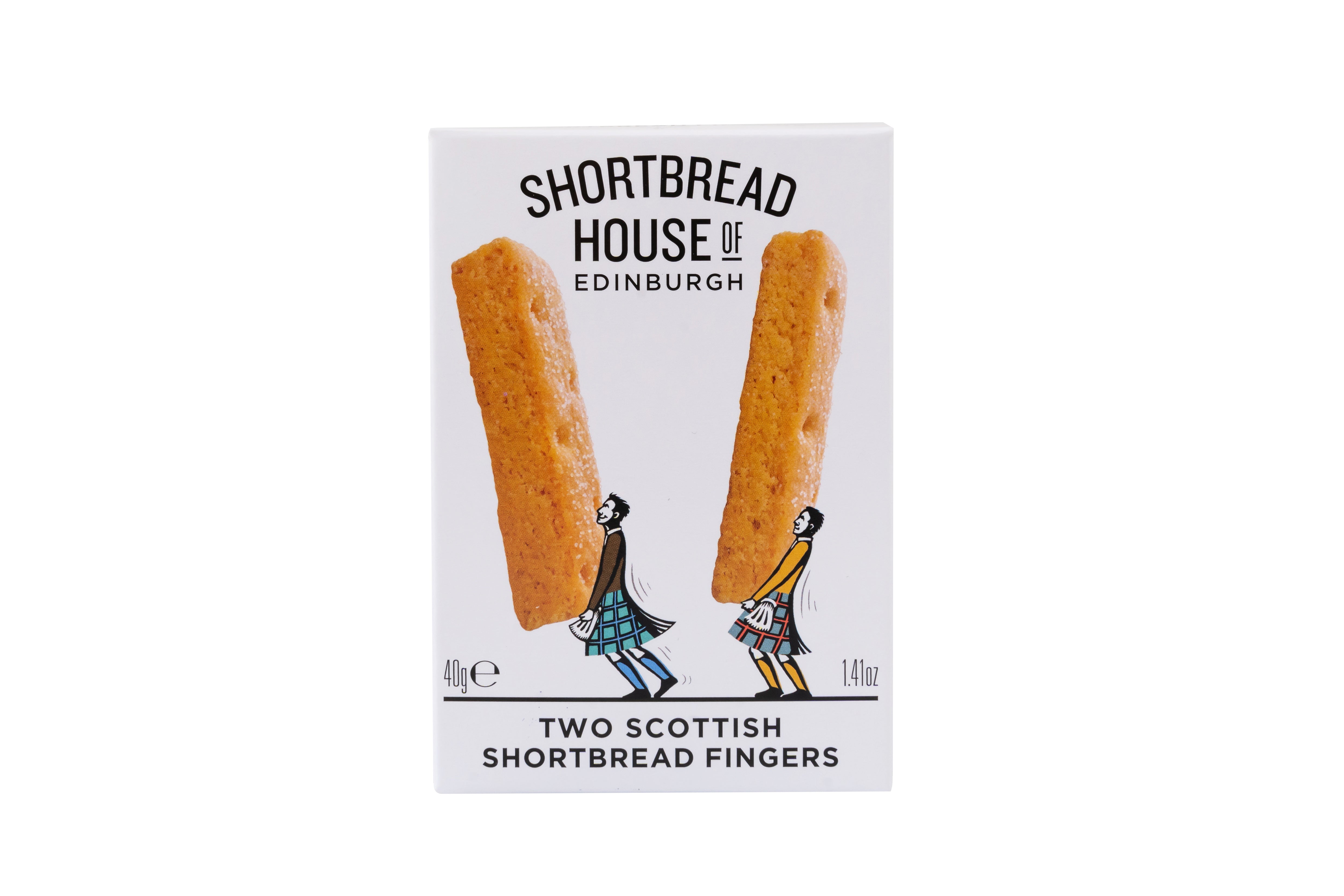 A wonderful small box of two original handmade shortbread fingers that are sweet and buttery to taste. The illustration on the box features two kilted Scotsmen tossing the “caber” - their shortbread fingers.